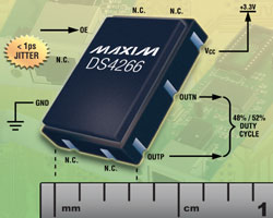 DS4266支持LVPECL和LVDS輸出。器件工作在-40°C至+85°C擴展級溫度范圍,提供節省空間的5.0mm x 3.2mm x 1.49mm、10引腳LCCC表貼陶瓷封裝。芯片起價為$4.50 (10,000片起,美國離岸價)。可提供樣品以加速設計進程。