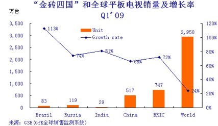 - 金磚四國(guó)平板電視銷量同比增長(zhǎng)72%,遠(yuǎn)遠(yuǎn)超過全球24%的平均增長(zhǎng)速度
