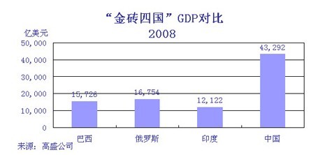 圖3:2008年金磚四國(guó)GDP對(duì)比。數(shù)據(jù)來源:高盛