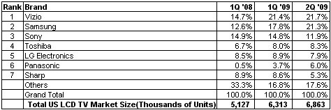 雖然三星奮起直追,但Vizio仍然連續(xù)第二個(gè)季度成為美國(guó)液晶電視市場(chǎng)霸主。