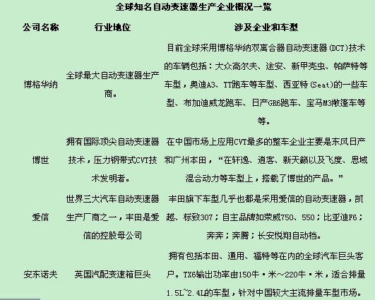 - 中國市場對自動變速器研發生產的渴求早就引來了諸多國際自動變速器企業