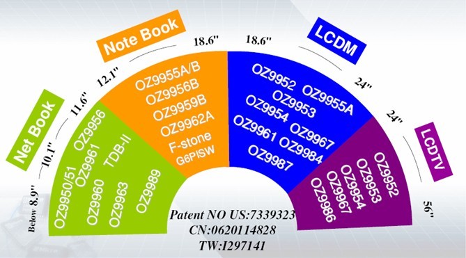 基于這樣的技術(shù)積累,目前凹凸科技已成為擁有最廣泛LCD背光驅(qū)動IC產(chǎn)品線的廠商,如圖1所示,從上網(wǎng)本到筆記本電腦再到LCD顯示器模塊、LCD TV,尺寸從8.9寸橫跨到56寸,凹凸科技能提供滿足各類應(yīng)用需的相應(yīng)LED驅(qū)動器解決方案(具備不同的效率等級、PWM接口、不同通道數(shù)),包括3x9、4x7、4x8、6x10、8x8、8x9等不同配置。多種技術(shù)特性如集成高速PWM功能、采用快速切換的開關(guān)模式、突波模式與相移技術(shù),及其專有的區(qū)域照明等技術(shù),則可幫助開發(fā)人員解決多串?dāng)?shù)LED均流、LED線性調(diào)光所產(chǎn)生的噪聲、功率耗散,以及廠商對于保護(hù)規(guī)格要求不一等挑戰(zhàn)。