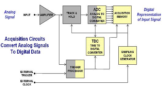 捕獲部分主要是由三顆芯片和一個電路組成,即放大器芯片,A/D芯片,存儲器芯片和觸發器電路,原理框圖如下圖2所示。被測信號首先經過探頭和放大器及歸一化后轉換成ADC可以接收的電壓范圍,采樣和保持電路按固定采樣率將信號分割成一個個獨立的采樣電平,ADC將這些電平轉化成數字的采樣點,這些數字采樣點保存在采集存儲器里送顯示和測量分析處理。