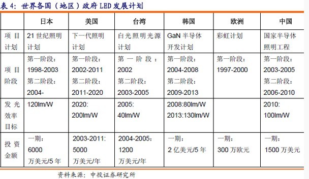 LED照明生產(chǎn)的效益顯而易見,世界各國都在政府的大力資助下加快推進(jìn)LED照明取代傳統(tǒng)照明的步伐,日本、美國、歐盟、韓國、中國臺(tái)灣和中國政府都制定了相應(yīng)的發(fā)展計(jì)劃。