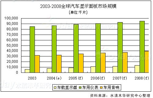 汽車信息系統(tǒng)的復(fù)雜性和信息密度在日益上升,這使得汽車內(nèi)部顯示器不再僅僅是基本的集中儀表顯示,而是要滿足越來越詳細和多樣化的車內(nèi)信息顯示需求。車載顯示器市場按應(yīng)用分為車載導(dǎo)航裝置、車載電視,以及車載信息系統(tǒng);按裝配時間分為原裝和后裝兩個市場。原裝市場需要經(jīng)過嚴格的認證,進入較難;后配市場則不需認證,是目前最大的市場,約是原裝市場的20倍。未來隨著汽車導(dǎo)航系統(tǒng)等成為汽車標(biāo)配,新車配備顯示器的比例即原裝市場的比例會逐步提升。