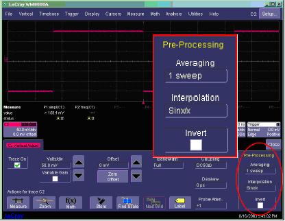 所有力科DSO都提供了SinX內插模式。在力科全系列X-Stream DSO上,可以通過通道設置菜單控制內插,每條通道支持不同的內插選擇。在以前的力科示波器型號上,則通過演算曲線提供SinX內插。