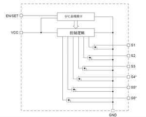 該器件主要特點(diǎn):輸入電壓范圍為1.8~5.5V;內(nèi)部有6個(gè)低端N溝通MOSFET開關(guān),每個(gè)開關(guān)都是獨(dú)立的;可采用單個(gè)串行控制線(S2C線)對各個(gè)開關(guān)實(shí)現(xiàn)通、斷控制;靜態(tài)電流少,典型值為3μA;每個(gè)開關(guān)可驅(qū)動(dòng)208mA;無須其他外圍元件;12引腳TSOP封裝;工作溫度范圍-40~+85℃。