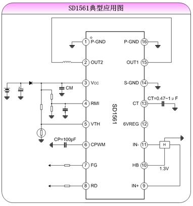 SD1561基于士蘭微電子自行研發(fā)的0.8微米全互補(bǔ)BCD工藝制造,工作電壓范圍為4.5V~16V,最大工作電流1A。電路內(nèi)置了同步整流功能并采用了DMOS管驅(qū)動(dòng),具有極低導(dǎo)通電阻和較高驅(qū)動(dòng)效率,相同功率下,風(fēng)扇的轉(zhuǎn)速可以比其他同類電路提高10%以上;高效率和低表面溫度,使其更節(jié)能,更可靠。