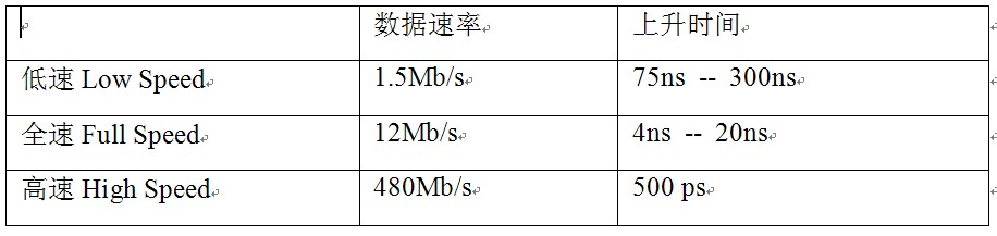 USB2.0是一種4線串行系統(tǒng),包括VBus,D-,D+和地線,D-和D+是數(shù)據(jù)傳輸線,VBus和地線傳輸5V電壓。按照功能的不同,USB2.0產(chǎn)品可分為主機(Host)、設備(Device)和集線器(Hub)三大類。還可以根據(jù)供電方式的不同將USB2.0設備分為總線供電(從主機汲取電流)和自供電兩種方式。為了適應不同類型應用對數(shù)據(jù)傳輸速度的要求,USB2.0定義了三種速率級別,分別是: