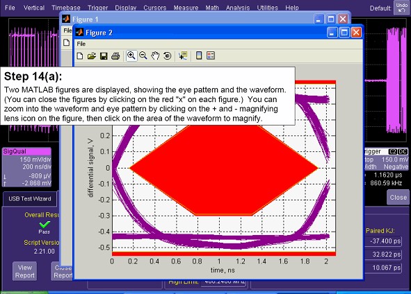 根據(jù)選擇好的測試項目,QualiPHY隨即展開一系列自動化測試過程:自動設置示波器工作參數(shù)包括采樣率、存儲深度、采集時間、縱軸刻度、觸發(fā)電平等;自動定義測量參數(shù);自動調(diào)用第三方軟件如Matlab對波形運算,自動分析波形和測量結(jié)果,自動輸出分析結(jié)果,整個測試過程完全是自動化的,無需任何人工干預。在測試過程中會同步顯示測試狀態(tài)和過程提示。