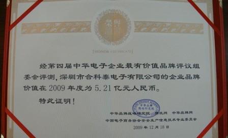 • 合科泰獲得“中華電子企業最有價值品牌”獎