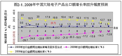 2008年下半年,國際金融風(fēng)暴席卷全球,以出口為主導(dǎo)的中國大陸電子信息產(chǎn)業(yè)直接受到?jīng)_擊,產(chǎn)品進(jìn)出口受阻,導(dǎo)致產(chǎn)品產(chǎn)量不斷下降,到今年元月份下降到谷底。由于中國政府及時(shí)實(shí)行積極的財(cái)政政策,調(diào)整產(chǎn)品結(jié)構(gòu),努力擴(kuò)大內(nèi)需,電子信息產(chǎn)業(yè)從2月份開始逐漸回升。雖然在個(gè)別月份有所波動(dòng),但回升趨勢(shì)穩(wěn)定向好。預(yù)計(jì)2009年全行業(yè)能實(shí)現(xiàn)5%左右的增長;進(jìn)出口額雖然有較大幅度的回升,但仍將呈現(xiàn)負(fù)增長;由于政府積極擴(kuò)大內(nèi)需,國內(nèi)市場(chǎng)將繼續(xù)保持10%左右的較快增長。