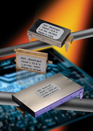 脈沖超級(jí)電容器的封裝也在不斷發(fā)展,主要朝向小占板面積和低高度方向。例如,AVX的BestCap®系列超級(jí)電容器大約8年前就面市了,包括了具有標(biāo)準(zhǔn)28mm×17mm尺寸和48mm×30mm大尺寸的型號(hào),厚度范圍是2.0mm~6.0mm。目前,已經(jīng)開發(fā)出了小尺寸(20mm×15mm)的型號(hào),更加微小尺寸(15mm×12mm)的型號(hào)也正在開發(fā)中(見(jiàn)圖1)。這些超級(jí)電容的結(jié)構(gòu)是非常堅(jiān)固的,具有精密鋼質(zhì)外殼。所有內(nèi)部單元部件都采用環(huán)保材料、無(wú)有機(jī)溶劑的水溶性材料制造,這些相同的單元部件會(huì)構(gòu)成單元陣列。由于采用實(shí)體封裝和相同的結(jié)構(gòu),可以承受超過(guò)1000g的重力加速度沖擊,而且這些內(nèi)部單元的工作溫度范圍是-40~+75℃。