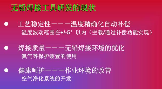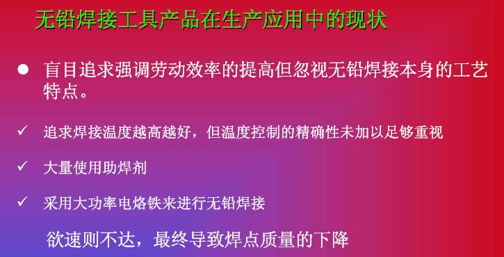 - 無鉛焊接工具在實際科研、生產、應用中的情況