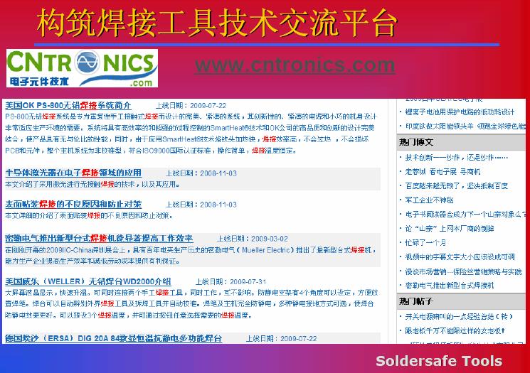 電子元件技術網http://m.shuilikongzhifa.com/club/muellerindex?ref=top_nav可以提供給我們一個平臺,在這個平臺里面,我們可以對于焊接設備的一些使用性能可以進行一些討論,對于新型焊接工藝本身的工藝特點進行一些分析,對于焊接材料,對于新工藝、新材料我們可以進行相應的分析,大家也可以直接,如果網絡方便的話,登錄到這個網站,我相信在這個平臺上可以一起努力,為之后的行業發展起到更多的推動作用。