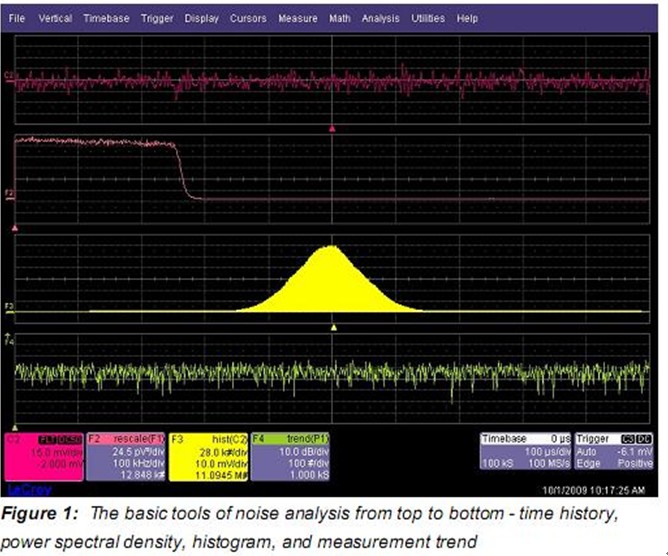 電路中的每個(gè)電子元器件會(huì)產(chǎn)生隨機(jī)噪聲。隨機(jī)噪聲的分析需要時(shí)域、頻率、統(tǒng)計(jì)域的工具。力科示波器具有表征隨機(jī)噪聲的能力,該應(yīng)用將主要展示這些功能。