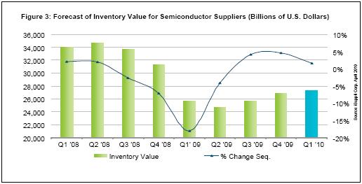 - 09年第四季度,全球所有半導體供應商的庫存合計為268億美元