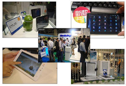 如下一組圖片,您能猜出這是什么類型公司的展臺嗎?就在不久前舉行的香港電子展上,瑞芯微一口氣推出和展示了五十多款移動互聯創新應用方案,涵蓋iMID(5英寸屏幕以內)、3G MID(內置3G SIM卡)、平板電腦(中國芯iPad)、智能手機(Android+3G+720P)、電子閱讀器(俗稱電子書)、無線數碼相框等一系列革新性終端產品。盡管這是一家芯片廠商,但它的展位上幾乎看不到芯片的影子。