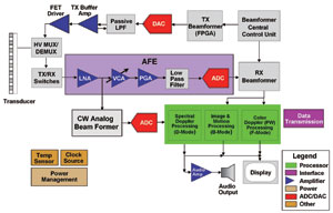 醫學成像領域正極大地受益于應用物理和電子學的研究和發展,特別是在諸如儀表設備、影像采集和建模等領域。由于具有完全無創傷性,超聲波在各種成像模式中占有特別的位置,其為內臟器官研究提供了一種可靠的方法。超聲波技術用于醫療目的已有半個多世紀。然而,這種必需的設備體積龐大且價格昂貴,直到最近才專門使用一些分立器件來制造。