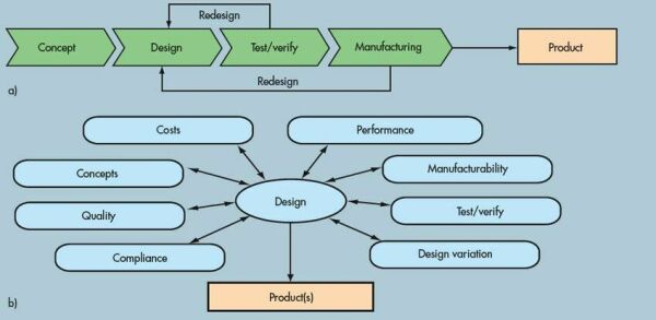 圖:(a)傳統PCB串行開發流程的設計周期長,信息共享有限,而成本持續上升;(b)并行開發流程允許多個開發程同步進行,有助于確保設計成功,避免延誤、額外開銷以及返工。