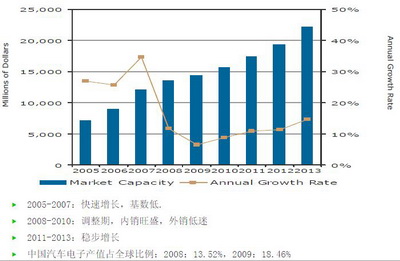- 汽車電子,2010年—2013年將會是穩步增長期