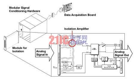 圖8在靈活的信號調理硬件中使用隔離放大器