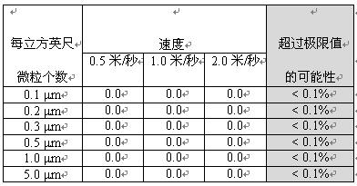 光學(xué)微粒記數(shù)器記錄了無拖鏈電纜(見表1)和裝有高柔性扁平電纜的電纜拖鏈A在每個(gè)測(cè)量點(diǎn)產(chǎn)生0個(gè)微粒(見表2)。按照VDIGuideline2083和ISO14644-1標(biāo)準(zhǔn)的集塵可能性的計(jì)算方法,測(cè)定這些電纜在上述測(cè)試速度的集塵可能性低于0.1%。