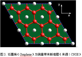 石墨烯是一種穩(wěn)定材料,也是一種禁帶寬度幾乎為零的半金屬/半導體材料。它具有比硅高得多的載流子遷移率(200000cm2/V),在室溫下有微米級的平均自由程和很長的相干長度。因此,石墨烯是納米電路的理想材料,也是驗證量子效應的理想材料。然而這種材料也非常難以測量(圖3)。石墨稀顯微鏡是測量該新材料的必要手段。關鍵問題之一是單個樣品和多層樣品中石墨稀的層數(shù)。TEM和低能電子顯微鏡(LEEM)是確定層數(shù)的重要檢測設備,多層切片模擬式確定TEM檢測能力和成像條件的有效方式。LEEM可以檢測層數(shù)及樣品的形貌。