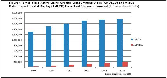 據iSuppli公司,有源矩陣有機發光二極管(AMOLED)供應短缺,正在妨礙其在智能手機市場挑戰AMLCD技術的主導地位。