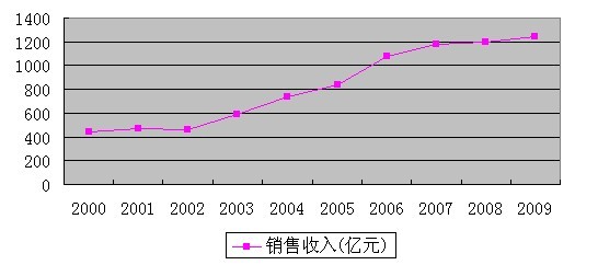 從本屆元件百強的整體銷售收入來看,第23屆元件百強企業2009年度銷售總額為1244.67億元,同比增長2.36%,同比增長率僅比去年(1.61%)略高,元件百強總體銷售收入增幅已連續三年低于10%。與第22屆元件百強的銷售總額相比,本屆元件百強的銷售總額增加了4.22%,近10年來,中國電子元件百強的銷售收入總額增長2.84倍,年平均增長率為12.32%(見表3,圖一)。