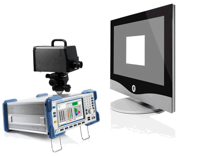 進行平板電視質量檢測的典型配置首先是需要一臺測試信號發生器,比如R&S DVSG。信號源發生器過HDMI接口輸出無壓縮的測試圖卡,其優異的信號質量可以作為理想的參考源。此時,通過科尼卡美能達的CS200/CS2000色度分析儀,可進行色彩參數的測試。在可調測試角功能下,CS2000可進行高達100,000:1的對比測試,因此可提供極高的測試精度。通過USB接口將科尼卡美能達分析設備和信號發生器DVSG相連,DVSG中預裝的評估軟件將會直接控制色彩分析儀進行測試,測試結果直接顯示在DVSG的屏幕上,無需外接電腦。