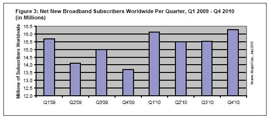圖3所示為每季度新增寬帶用戶的預(yù)期數(shù)量,從2009年第一季度到2010年第四季度。