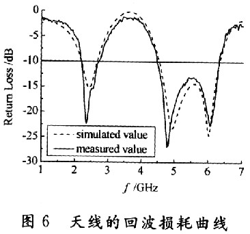 在綜合考慮阻抗帶寬和輻射特性的基礎(chǔ)上,得到了以下的最優(yōu)化天線幾何參數(shù),其中L=29mm,L1=6mm,L2=6mm,L3=6.5mm,W1=3mm,W2=1mm,W3=2.5mm,S1=S2=S3=1mm,LB=11mm,WB=9mm,WG=26mm,HB=3mm,LG=7mm,LMS=10mm。天線實(shí)物如圖5所示。[page]