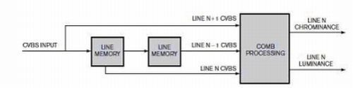 2D梳狀濾波器的工作原理是:如果圖像目標行的上下存在類似幾行,色度和亮度就可以更徹底地分離。