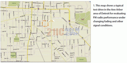 然而,測試行駛方法只能展現主要的可重復性問題。由于天氣的變化和大型車輛的靠近,信號傳播狀態會不斷發生改變,因此任兩次測試行駛都不會得到相同的結果。另外,由于測試行駛是在很大的區域范圍內完成的,要準確評估不同地區的AM/FM收音機設計性能,測試可重復性十分關鍵。幸運的是,由于射頻信號記錄和存儲技術的不斷發展,記錄真實的FM廣播信號完全可以替代傳統測試行駛方法實現商用AM/FM收音機設計的評估。