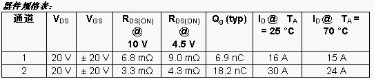 一片PowerPAK 1212-8或SO-8的導通電阻可以分別低至5m?或4m?。然而,SiZ710DT的低邊Channel 2 MOSFET利用了非對稱結構在優(yōu)化空間上的效果,在10V和4.5V下的導通電阻低至3.3m?和4.3m?,在+25℃和+70℃下的最大電流為30A和24A。另外,高邊Channel 1 MOSFET的導通電阻也有改善,在10V和4.5V下分別為6.8m?和9.0m?。