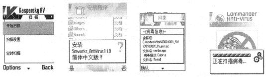 (3)針對(duì)目前智能手機(jī)感染的典型病毒:CommWarrior、Cabir手機(jī)病毒和Mabir.A手機(jī)病毒,各軟件公司已經(jīng)陸續(xù)推出了一些防病毒軟件,如NetQin手機(jī)殺毒系統(tǒng)、金山手機(jī)毒霸、卡巴斯基手機(jī)殺毒軟件、光華反病毒手機(jī)殺毒軟件SymbianS60、TSG_Phone_Safe_殺手機(jī)病毒軟件、Anti-Virus.v1.10、Simworks_AnitiVirus_1.16等。各運(yùn)營(yíng)商可以推薦用戶進(jìn)行相關(guān)軟件的加載,手機(jī)廠家也可以根據(jù)自身情況出廠時(shí)預(yù)裝一些殺毒軟件(見圖5)。