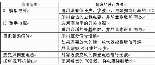 便攜式音頻系統(tǒng)中另一個(gè)損害信號(hào)質(zhì)量的噪聲源是耦合進(jìn)模擬輸入和輸出信號(hào)中的噪聲。噪聲耦合機(jī)制可以是感性或容性的,但優(yōu)秀的系統(tǒng)設(shè)計(jì)和PCB版圖可以減小噪聲耦合。可以達(dá)到較好噪聲免疫的方法之一是在模擬音頻信號(hào)路徑中盡可能使用差分信號(hào)。用于差分信號(hào)的PCB走線應(yīng)成對(duì)布線并確保匹配阻抗,這樣任何噪聲都會(huì)等量地耦合進(jìn)差分信號(hào)路徑的兩側(cè)(即‘共模’信號(hào))。差分電路具有的共模抑制特性可很好地抑制任何耦合進(jìn)來(lái)的噪聲,從而有效減弱可聽(tīng)到的噪聲音量。雖然在許多情況下不能使用差分信號(hào),但這的確是非常有用的手段。