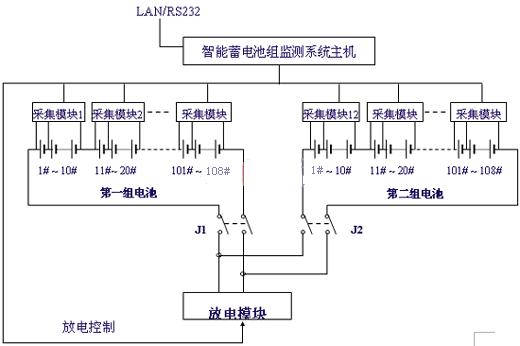 與電池巡檢儀不同,在這個系統增加了一個放電模塊,放電模塊能承受較大的沖擊電流,它接收監控主機的放電命令,接通放電回路,電池通過負載放電,同時采集模塊將采集每節電池電壓的變化,在主機中得到了每節電池內阻特性曲線。放電模塊也可作為長時間放電負載,實現對電池容量的核對性測試及整組電池的活化處理。這個系統實現對蓄電池全方面的監測和維護管理。