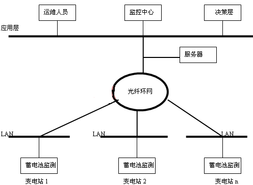 蓄電池在線監測還可以利用通訊手段進行網絡化管理(如圖4),將幾個站或一地區的蓄電池監測通過光纖進行組網,建立一個實時遠程智能化蓄電池監測網絡化管理系統,以實現信息集中和遠程控制,使運行檢修人員、相關人員和管理決策層能夠通過局域網內的任何一個終端用IE瀏覽的方式即可實時掌握各變電站蓄電池的運行情況及其性能變化趨勢,使蓄電池得到及時的維護,同時也為“設備狀態檢修”提供可靠依據,將“定期維護檢修”轉變為“狀態檢修”,從而實現對蓄電池的科學化管理,保證系統的可靠、安全運行。