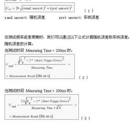 頻率和周期互為倒數(shù),所以在頻率計的測試中,頻率和周期的誤差計算方法是一樣的。從測試誤差的產(chǎn)生來說主要有兩類,一類是隨機誤差,一類是系統(tǒng)誤差。隨機誤差主要由于如噪聲或者一些隨機因素產(chǎn)生的誤差,很難消除。系統(tǒng)誤差主要是由于測試方法、儀表設(shè)置或者儀表性能引起的誤差。不同的設(shè)備制造商都有自己的關(guān)于誤差的計算方法,大同小異,本文論述泰克FCA3000系列頻率計測試誤差的計算方法。