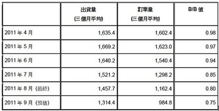 根據(jù)國際半導體設(shè)備材料產(chǎn)業(yè)協(xié)會(SEMI)最新公布的Book-to-Bill訂單出貨報告,2011年9月份北美半導體設(shè)備制造商平均訂單金額為9.848億美元,B/B值(Book-to-Bill Ratio,訂單出貨比)為0.75;代表半導體設(shè)備業(yè)者當月份出貨100美元,接獲75美元的訂單。