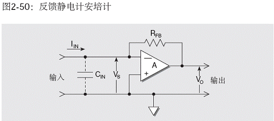 輸入電容對采用負反饋的電流表的影響與其對分流型安培計的影響不同。這種模式的電路示于圖2-50。