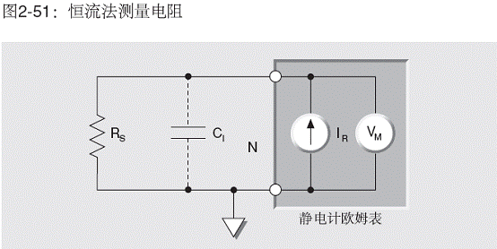 輸入電容也會以同樣的方式影響電阻測量(圖2-51)。這時,CIN也必須由電流(IR)充電,因此也適用同樣的公式。