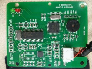 RFID讀寫器是一個(gè)包含了基帶微控制器、RF發(fā)射和接收模塊以及電源和控制總線的復(fù)雜的射頻嵌入式系統(tǒng)。基帶控制信號(hào)和系統(tǒng)內(nèi)部寄存器的狀態(tài)直接影響系統(tǒng)的工作狀態(tài)。以我們測(cè)試的讀寫器為例,NXP CLRC632讀寫控制芯片包含了 壓控振蕩器、鎖相電路、編碼、解碼、混頻和發(fā)射/接收功能,芯片的工作受到單片機(jī)芯片STC 90c58RD+的控制。