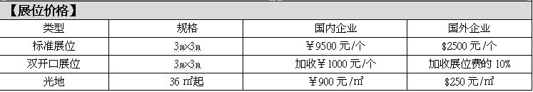 標準展位配備三面圍板(高2.5m)、公司楣板、咨詢臺1張、椅子兩把、光管2只、電源插座1個、廢紙簍1個;光地不提供任何配置;展位搭建、用電、展具需另行租賃。