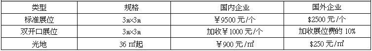 標準展位配備三面圍板(高2.5m)、公司楣板、咨詢臺1張、椅子兩把、光管2只、電源插座1個、廢紙簍1個;光地不提供任何配置;展位搭建、用電、展具需另行租賃