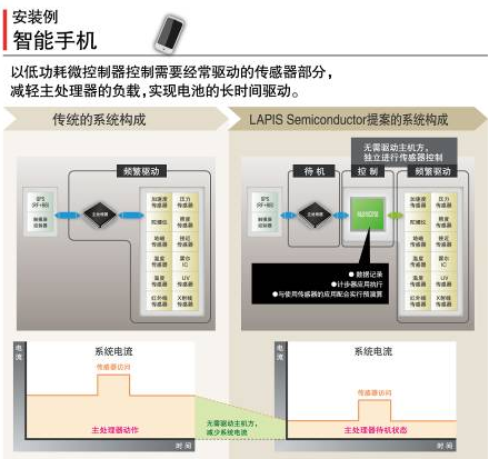 羅姆集團(tuán)旗下的LAPIS Semiconductor面向智能手機(jī)市場開發(fā)出了可用更低耗電量綜合控制各種傳感器的、世界最小級別的低功耗微控制器“ML610Q792”。最近,在手機(jī)中智能手機(jī)所占的比率日益增加,而為了提供新的應(yīng)用和服務(wù)不斷增加的傳感器群,導(dǎo)致智能手機(jī)的電池負(fù)載持續(xù)上升。LAPIS Semiconductor著眼于這種情況,將需要頻繁驅(qū)動(dòng)的傳感器群從主處理器分離,通過低功耗微控制器進(jìn)行控制,減輕了主處理器的負(fù)載,從而實(shí)現(xiàn)了電池的長時(shí)間驅(qū)動(dòng)。另外,利用本微控制器的特點(diǎn)——即耗電量低的特性,通過與無線通信的組合,亦適用于傳感器網(wǎng)絡(luò)模塊等應(yīng)用。