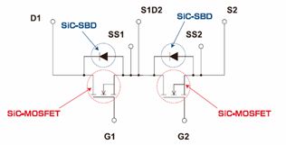 內置了最先進的SiC-SBD與SiC-MOSFET的“全SiC”模塊,與傳統的Si-IGBT相比,開關損耗可降低85%。