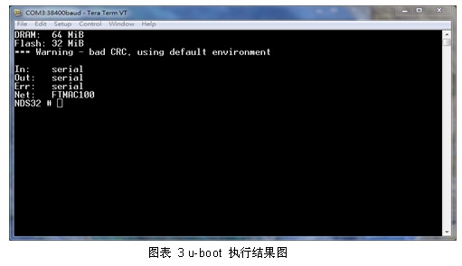 patch 完成的u-boot source code 可以產生ROM版的u-boot image,直接開機后的執行結果如圖表3所示。
